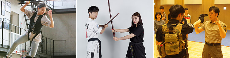 액션연기에 필요한 무술과 연기를 현재 국내 액션연기를 이끌어 가고 있는 교수진이 직접 교육하여