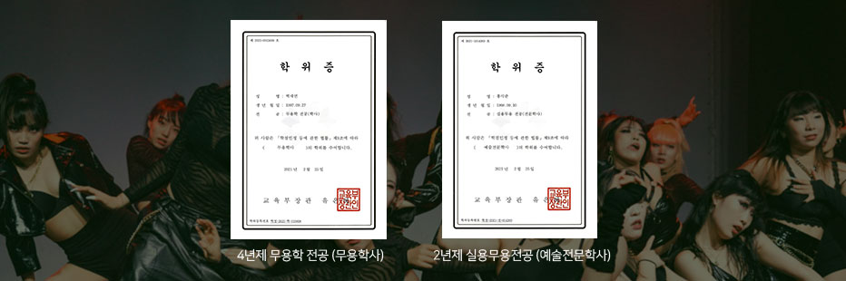 교육부 장관 명의의 4년제 무용학 전공(무용학사) 학위 취득 가능