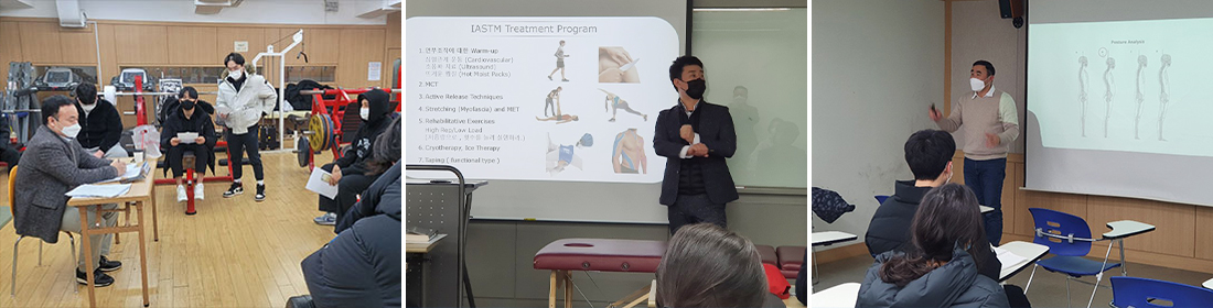 메디컬트레이너 황봉남, 박희홍, 이재원 교수 등 유명 재활트레이너와 메디컬트레이닝 특강을 통한 현장 실무 능력 향상에 도움