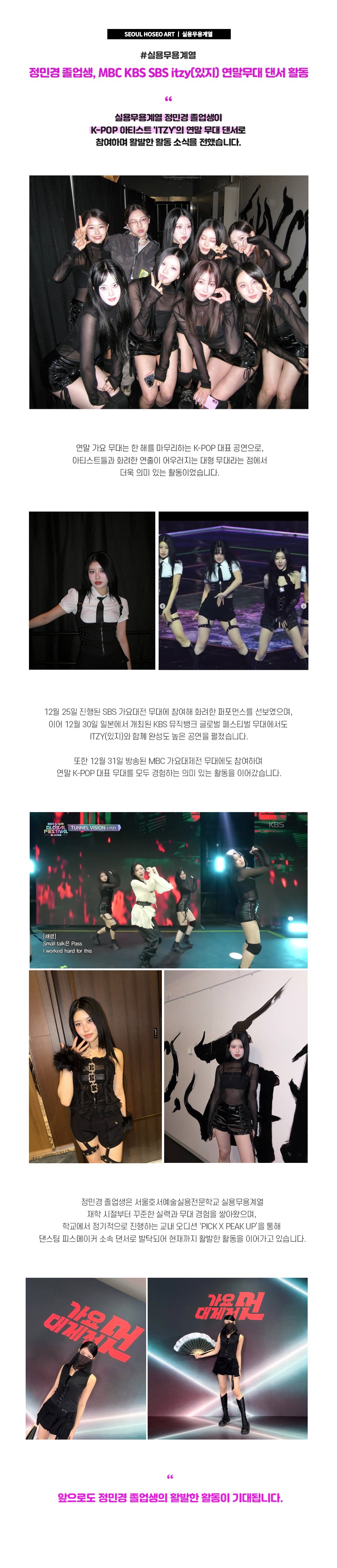 실용무용계열 정민경 졸업생, MBC KBS SBS itzy(있지) 연말무대 댄서 활동