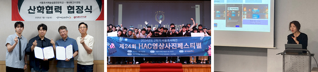 - 본교의 가장 큰 장점으로서 방송영화제작계열과의 협업을 통해 방송영화 콘텐츠 제작의 기획부터 참여하여 좀 더 세밀하고 만족할 만한 수준의 컴퓨터 그래픽 작업이 가능