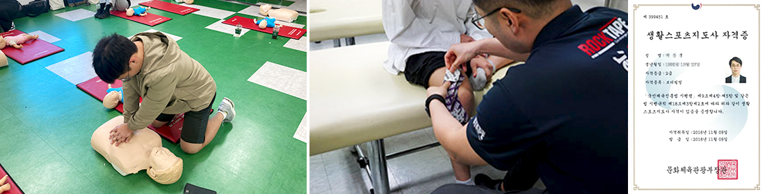 스포츠 재활 실무, 스포츠마사지&테이핑, 스포츠 손상 평가, 선수 재활트레이닝 실무, 교정운동학 등