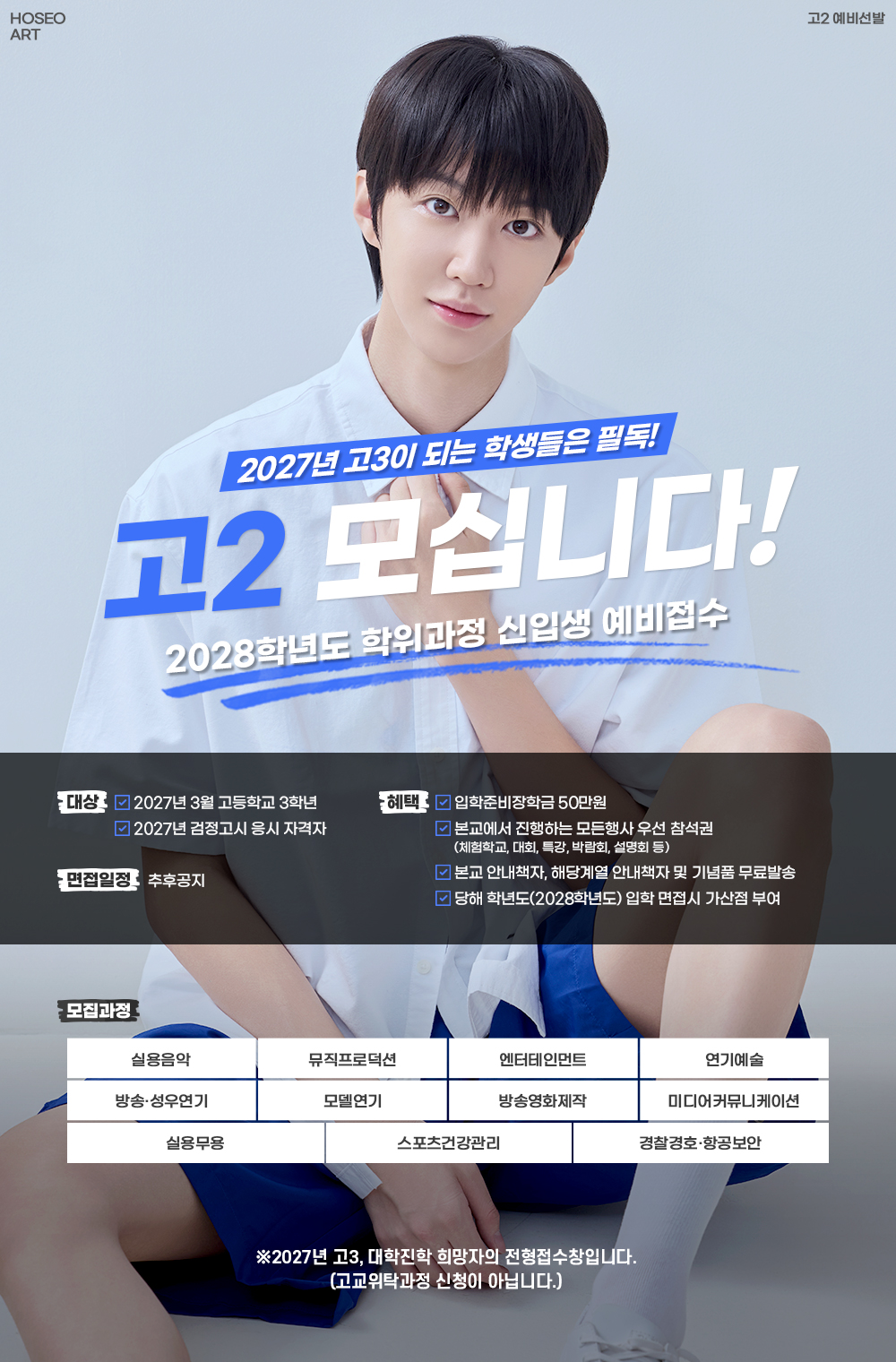 고2(예비 고3) 학생들의 신입생 예비접수를 받습니다.