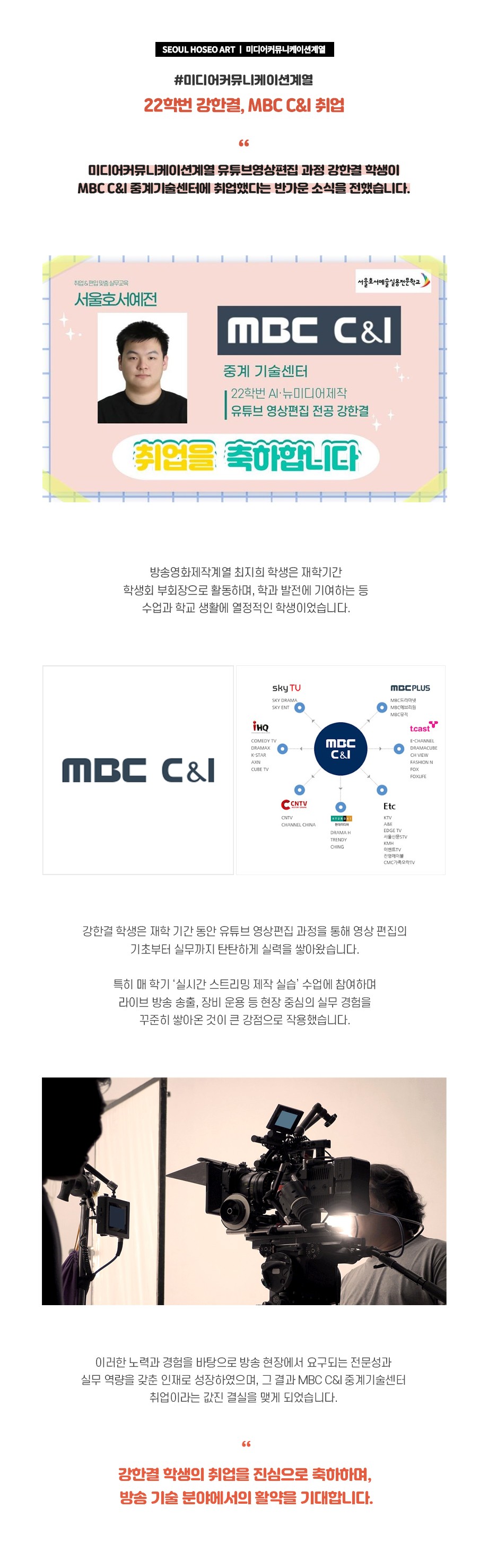 미디어커뮤니케이션계열 22학번 강한결 MBC C&I 취업