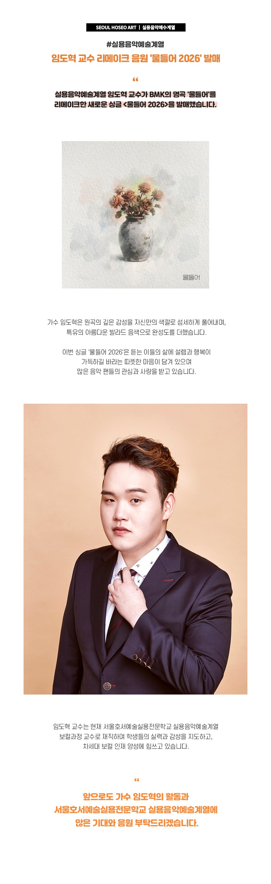 실용음악예술계열 임도혁 교수 리메이크 음원 '물들어 2026' 발매