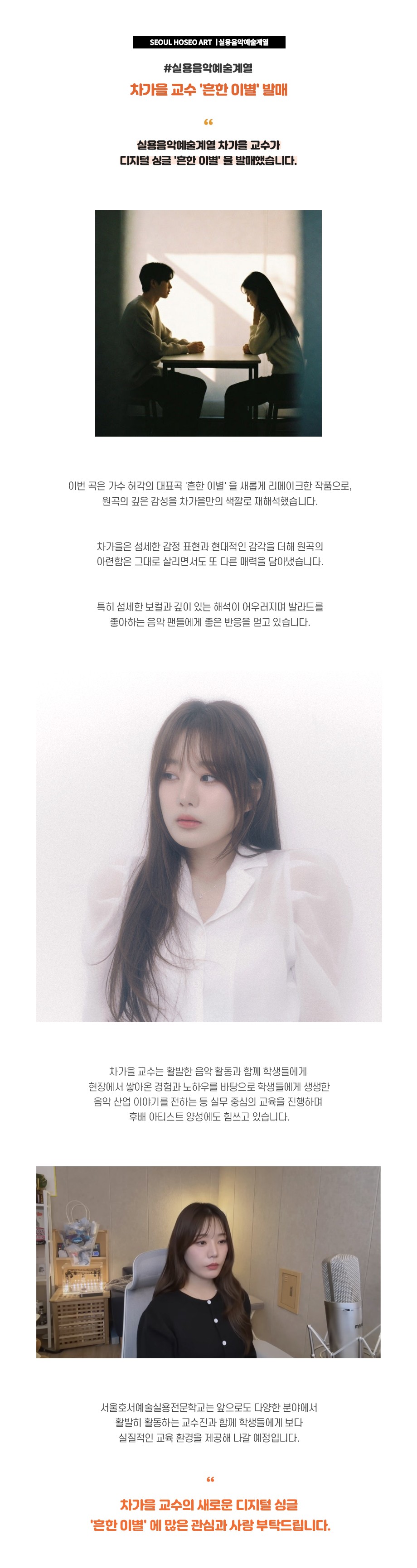 실용음악예술계열 차가을 교수 '흔한 이별' 발매